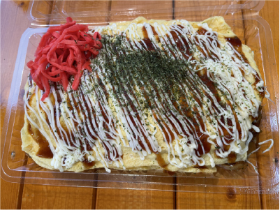 じゃがいもフライ、ルイジアナチキン、ごぼうの唐揚げ、岩下の新生姜メンチカツ、たこ焼き、アルコール、ラムネ、メロンソーダ、ラムネメロンクリームソーダ、マンゴージュース、レモネード、アイスチョコバナナ、かき氷、削りフルーツ